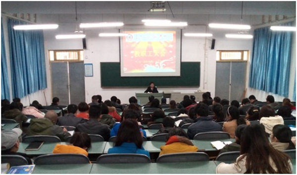2014年2月21日下午三时,我校全体教职工大会在星湖一阶举行 91视频网站在线观看,王大成院长,周及至书记,副院长钟代军,白成良,院长助理邓盛泉以及全体教职工参加了大会,会议由钟代军副院长主持。