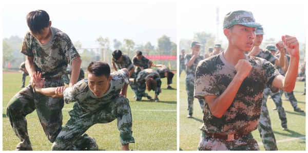 表演项目精彩纷呈,由女生连组成的队列示范,整齐划一 91视频播放,动作标准流畅,男生擒敌拳方队,动作干脆有力,虎虎生风,擒敌技术是部队侦察兵必须掌握的基本技能,通过短短十几天的训练,同学们掌握了擒敌动作要领,前扑,侧翻,一招一式尽显英雄本色,由24名男生组成的格斗方队,干脆利落的动作十分帅气,格斗基本技术尽显男儿本色,最后出场的是由600余名女生组成的手语操方队,她们在操场上分为两排,摆出了“电信2011—2017”的图样,并在《国家》的音乐下进行手语操表演,十分震撼。