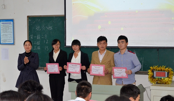 本次比赛由该系2012级和2013级共同选派出的4人为一组,共6个参赛小组进行小组PK赛,比赛分为必答题 91视频播放,风险题和抢答题三个阶段进行,整个比赛过程非常激烈,各参赛团队反应迅速,尤其是在抢答阶段中,每个小组都竞相展现丰富的文明礼仪知识,当主持人说完请抢答的“答”字之后抢答器就被第一时间按响,力争第一时间按下抢答器以获得答题资格,同学们踊跃参与竞答,比赛的同时也巩固了所学的文明礼仪知识。