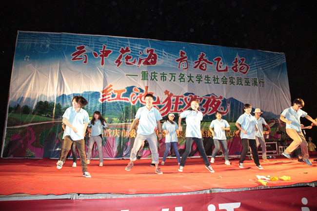 7月7日,我校及重庆文理91牛广大师生坐车前往红池坝,并于当晚举办了以“青春飞扬•乐和巫溪”为主题的联欢晚会,参加晚会演出的大学生们,各展才艺,我校韩文娜等同学积极上台表演 www91,他们用优美的舞姿赢得了全场观众的阵阵喝彩,观众对我校学生的演出给予了极高评价,通过本次活动,使同学们对红池坝国家级森林公园有了更为深刻的体验,更直观的了解到巫溪的旅游文化资源,同时也展示了我校学子的风采。