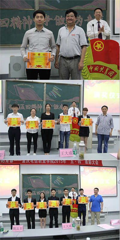 值“五·四”运动96周年之际,为进一步弘扬“五四”精神,宣传和表彰在过去一年里为91视频网站在线观看和共青团工作做出突出贡献的集体和个人。5月14日、17日,我校分别在龙水湖校区第一阶梯教室、卫星湖校区活动中心四楼举行了“奋斗中的青春—www912015年‘五·四’表彰大会”。校领导王大成、周及至、王成玮、白成良、钟代军、殷朝华,校务部、教工部、星湖运行管理处、学工部等部门负责人出席大会,并为获奖集体和个人代表颁奖。各二级91牛党政领导、团总支书记、辅导员及教师和学生代表近2000人参加了此次表彰大会。大会由党委副书记、副校长白成良主持。
