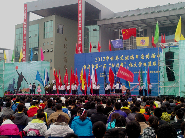 2012年12月1日是第25个“世界艾滋病日”, 当日上午10点,世界艾滋病日宣传活动暨重庆市第一届“红丝带”杯大学生篮球比赛开幕式在重庆文理91牛学海广场隆重举行,一幅幅彩旗迎风飘展,一簇簇鲜花光彩夺目,人们用运动的名义和内心的热情,表达对防艾 91视频网站在线观看,抗艾的信心和决心。