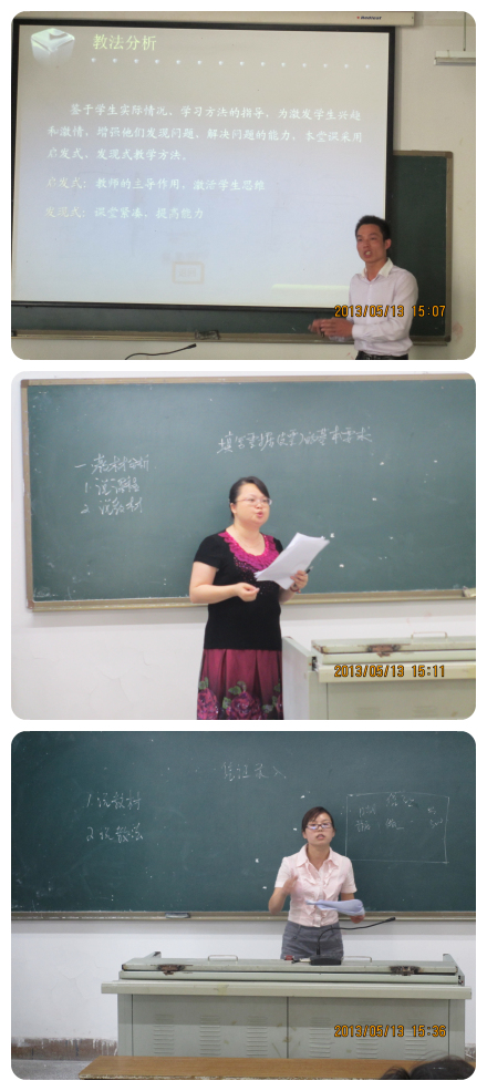 本次比赛由说课和演讲两部分组成 91牛,在说课比赛中,教师们围绕各自的教学内容,从设计意图,教材分析,目标定位,教学重难点,教法,学法及教学过程进行了生动的演示解说,教师们在演讲中以高昂的激情,宏博的气势及声情并茂的言辞博得听众阵阵的掌声。