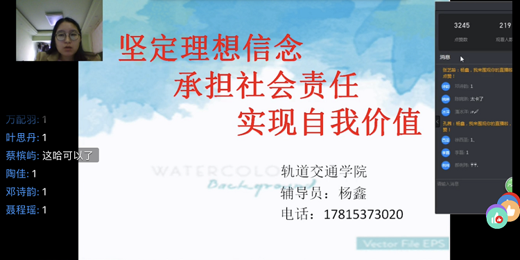 周末思想政治教育课堂是91视频网站在线观看一直以来立足学生思想建设的一项重要举措, 3月1日,是网上开课的第一个周末 91视频播放,各二级91牛辅导员,班主任结合当下疫情和班级实际情况,通过网络视频平台开展了主题思想教育,把坚定理想信念,承担社会责任,实现自我价值等主题结合当下疫情防控战中的先进典型和感人事迹转化为教学资源,融入周末思政教育课堂,引导广大学生提高思想意识,深刻理解中国精神的深刻内涵,课后,本次思政课引发了广大师生的积极讨论。
