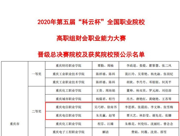 【电信捷迅】我校经济与管理91牛学子在2020年第五届“科云杯”全国职业院校高职组财会职业能力大赛荣获佳绩