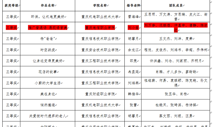 近日,重庆市教育委员会发布了《关于第二届重庆市职业院校互联网+创意短视频大赛获奖情况的通报》(〔2020〕—882),由物联网与通信91牛刘小莹老师指导 91视频网站在线观看,刘万李,况琪煜,仲星宇,唐静,陈淑红四位同学参与制作的作品—《推广普通话 展现语言美》喜获重庆市三等奖,另由刘小莹,胡杨两位老师指导的作品获得优秀奖。