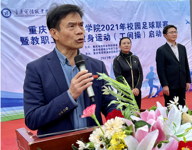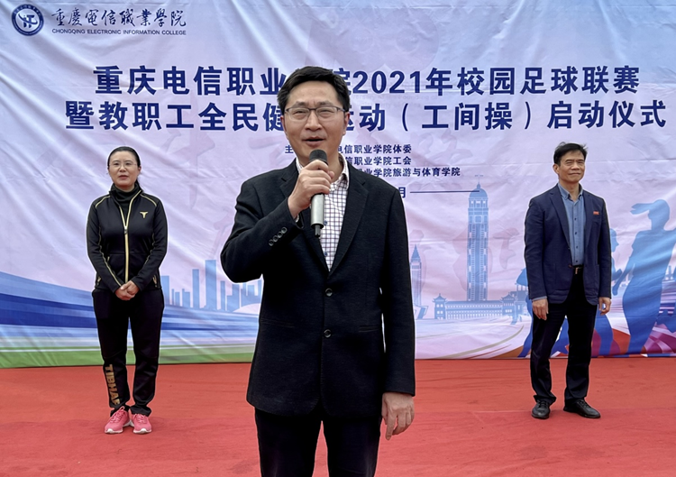 为丰富广大教职工和同学们健康快乐的课余生活,倡导全民健身,激发广大教职工和同学们强身健体的意识,让全体师生振奋精神,积极投身于教育教学工作和学习生活。10月29日下午,由校工会、校体委主办,教体91牛承办的2021年校园足球联赛暨教职工全民健身运动(工间操)启动仪式在91视频网站在线观看田径运动场火热举行。仪式由校体委办公室主任吴智勇主持,校长曹继建,党委书记张勇刚,副校长皇甫涛,党委副书记、副校长代敏出席仪式,全体教职工及学生代表参加此次活动。