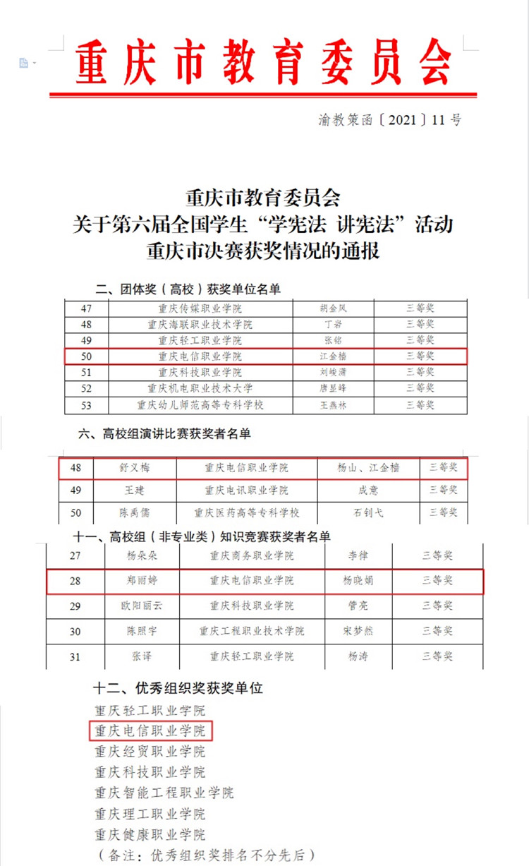 为扎实推进宪法网上学习和“宪法卫士”行动计划,形成“比,学,赶,帮,超”的良好学习氛围,2021年10月,教育部办公厅和重庆市教育委员会举行了第六届全国学生“学宪法 讲宪法”活动 91视频网站在线观看,全市2亿人次参与了网上宪法法律知识学习,420余万名大中小学生参加了网上知识测评,参与率名列全国第二名。