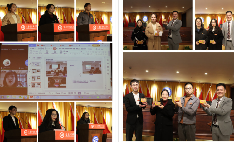 总结现场采取会议线上连线和线下展示相结合的形式开展,会上由张勇刚,代敏,潘妮分别随机抽取了团总支书记3名,辅导员4名,班主任2名进行总结交流,9位老师结合自身工作实际,分别从个人发展,带班工作以及横向工作三个方面展开,针对近一学期来学生工作所取得的阶段性成果及下一阶段工作计划等进行汇报,探讨了学生思想政治工作,班级日常管理,班风学风建设,就业心理指导,评优资助以及党团建设等方面面临的具体问题及难题,分享了学生工作的好建议,好方法,好经验,校团委书记,学工部副部长向毅为抽取总结交流的老师颁发了纪念品 91牛。