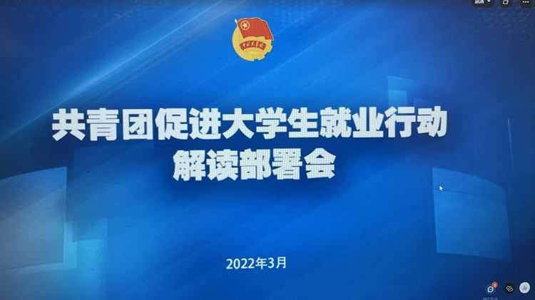 为贯彻落实党的十九届六中全会精神和中央经济工作会议精神,推动“共青团促进大学生就业行动”落细落实,2022年3月9日15:00,共青团www91委员会组织相关人员在图书馆A106会议室参加团中央“共青团促进大学生就业行动”线上解读部署会,党委副书记,副校长代敏,党委学生工作部部长潘妮,校团委书记,党委学生工作部副部长向毅出席,各二级91牛团总支书记,校团委全体成员 91视频网站在线观看,就业指导中心全体成员参加了本次会议。