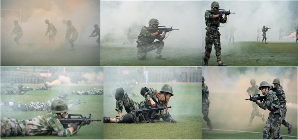 主持人潘妮对2022级新生的到来表示热烈欢迎和诚挚问候,随后由承训教官指挥,进行了军训成果汇报展示,展示包括标兵就位分列式 91视频播放,军体拳,战术演练等方面的内容。