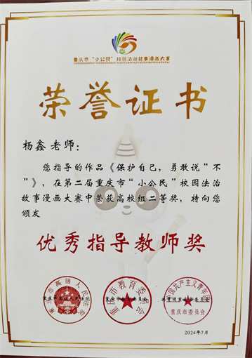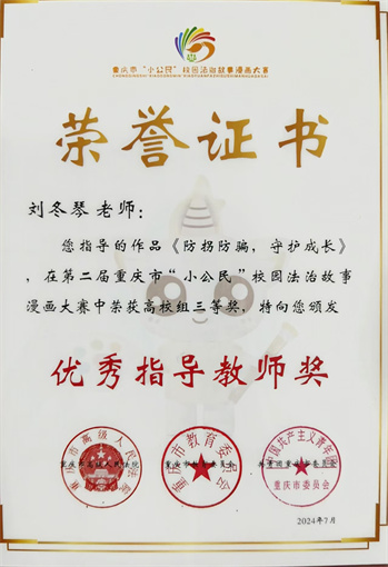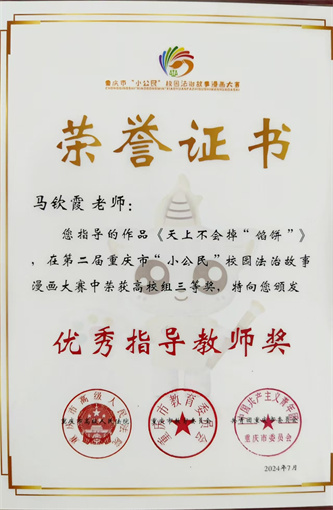 近日,由市高法院,市教委 91视频网站在线观看,团市委联合举办的第二届重庆市“小公民”校园法治故事漫画大赛获奖情况通报中,我校荣获高校组二等奖1名,三等奖2名,优秀奖2名,优秀指导教师3名。