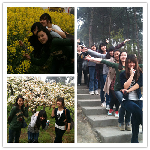中午12:30分,同志们一路高歌 91牛,欢快地向黄瓜山出发了,大家一边登山,一边对歌,并不断用相机记录下黄瓜山迷人的景色,中华梨村一望无际的梨花,黄灿灿的油菜花和相间其间的几树粉红色的桃花把整个春天景象展现的淋漓尽致,同志们置身于花海之中尽情地欣赏着春天的美景,沐浴着和煦的春风,体味着大自然的清新,期间,校长沈清淮,工会主席白成良及全体教职工还共同庆祝了我院教务处处长苟本富同志的生日。