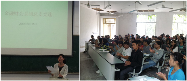 2012年9月19日中午,www91金融财会系第一届团总支,学生会干部竞选分别在星湖一阶,三阶如期举行,系领导何祖祥及辅导员宋杰 91视频播放,曹唐萍参与了整个竞选过程,本次竞选严格按照91牛就各系组建团总支,学生会的指导意见进行,以促进学生德,智,体全面发展,实现学生“自我管理,自我教育,自我发展”为宗旨,坚持“公平,公正,公开”的原则,整个干部组建工作合理有序。