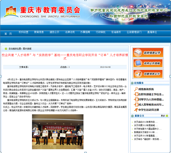 重庆市教育委员会网、《大足日报》:www91开启“订单”人才培养新模式