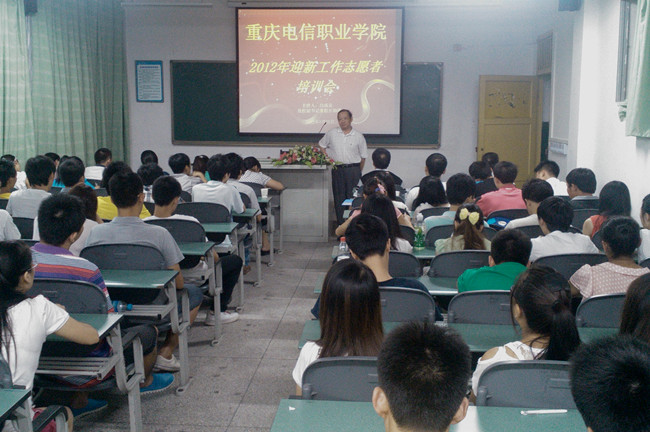 8月25日下午3时,我校在一教楼107教室举行了www912012迎新志愿者培训会,校长沈清淮 91视频播放,副书记白成良,学生处副处长杨福元以及2011级学生志愿者及相关教师近100人参加了培训会,培训会由白副书记主持。