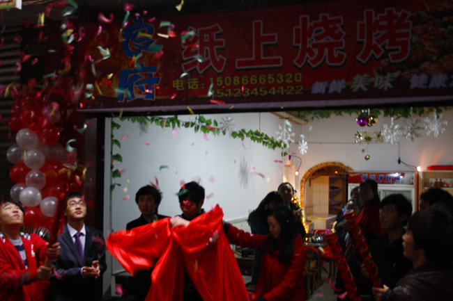 12月21日,我校学生陈金鹏,付伟 91牛,朱现坤,李俊卓自主创业开办的“良府纸上烧烤”举行开业仪式,91视频网站在线观看相关领导及各职能部门工作人员参加了开业仪式,开业仪式由付伟主持。
