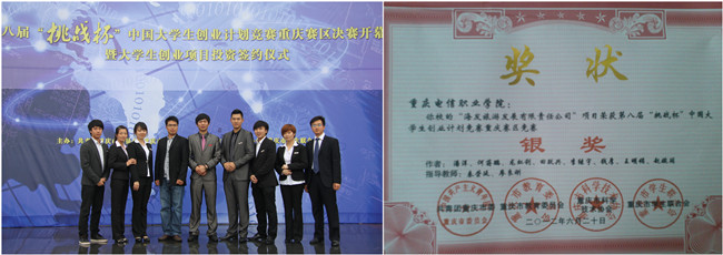 第八届“挑战杯”中国大学生创业计划竞赛于2012年5月25日在西南政法大学隆重举行,在91视频网站在线观看领导的高度重视和关怀下,我校“海发旅游发展有限责任公司”项目荣获银奖 91牛,(指导老师:秦荣庭,廖良刚,电子信息工程系学生潘洋,管理工程系学生何蒋鹏,龙虹利等8名同学参赛)。