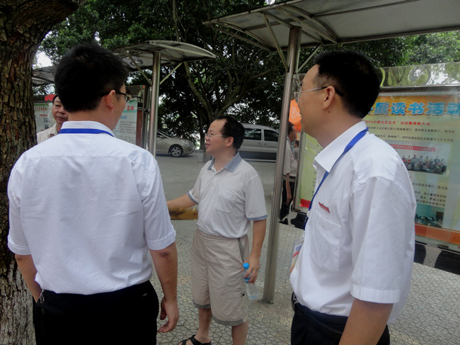 蒋礼文处长和何小兵总经理在白副书记的陪同下参观了各系报到点 91牛,随后,何小兵总经理在报道处还亲自现场办公,为我校解决疑难问题,进一步推动了我校迎新工作顺利进行。