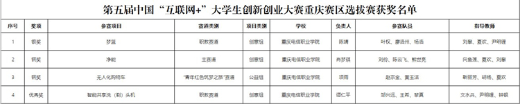 重庆市教育委员会关于第五届中国“互联网+”大学生创新创业大赛重庆赛区选拔赛获奖名单