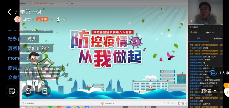 思政第一课中,各二级91牛辅导员、班主任通过微信、QQ、钉钉等新媒体切实引导学生理性认识疫情,号召广大学生做防控疫情的参与者和自我保护的先行者,勇担时代赋予的责任与使命,与祖国共命运;在学习习近平总书记的重要指示精神、国务院关于疫情防控重要决策部署以及重庆市委、市政府对疫情防控采取多项举措和重要决策部署时,一个个鲜活案例,一个个生动视频,使同学们由衷感受到在中国共产党的坚强领导下,全国人民团结一心、众志成城,战胜疫情的信心与决心;91视频网站在线观看涌现出来疫情防控中的优秀青年大学生事迹更是让同学们激情满满,很多学生由衷的发出“武汉加油!中国必胜!”的激扬呐喊声。