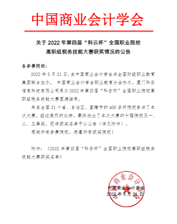 【喜讯】经济与管理91牛学子喜获2022年第四届“科云杯”全国职业院校高职组税务技能大赛全国一等奖