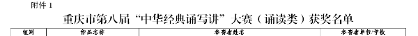 【喜讯】我校学生在重庆市 “中华经典诵写讲” 大赛中获奖