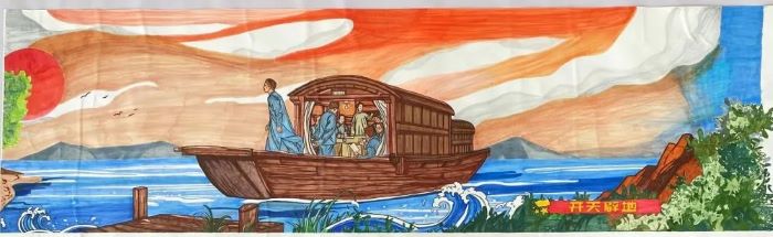 活动现场开展了“百年奋斗共描绘 91牛,师生献礼二十大”——20米长卷绘制活动,与会领导和师生代表共同书写了对祖国的祝福。