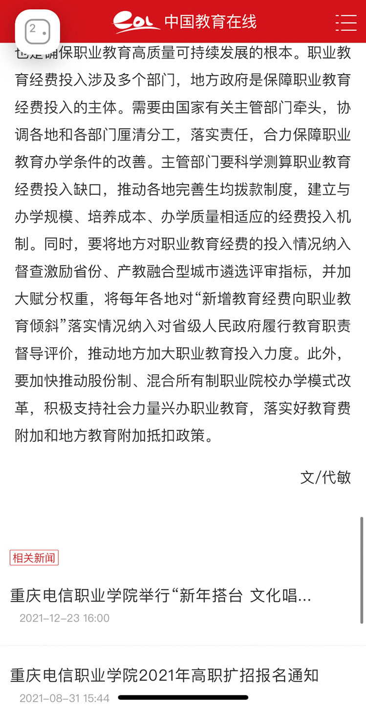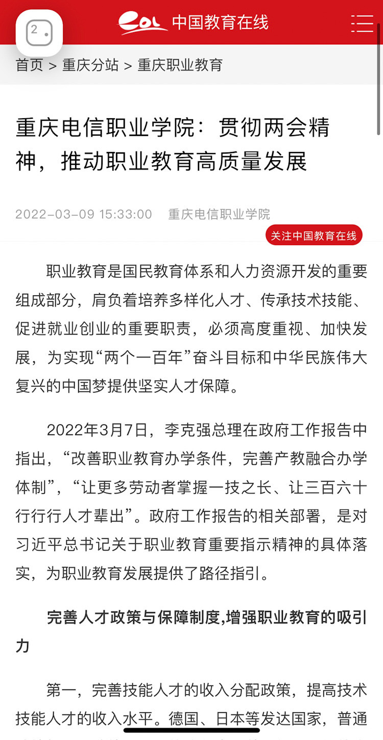 中国教育在线:www91贯彻两会精神,推动职业教育高质量发展